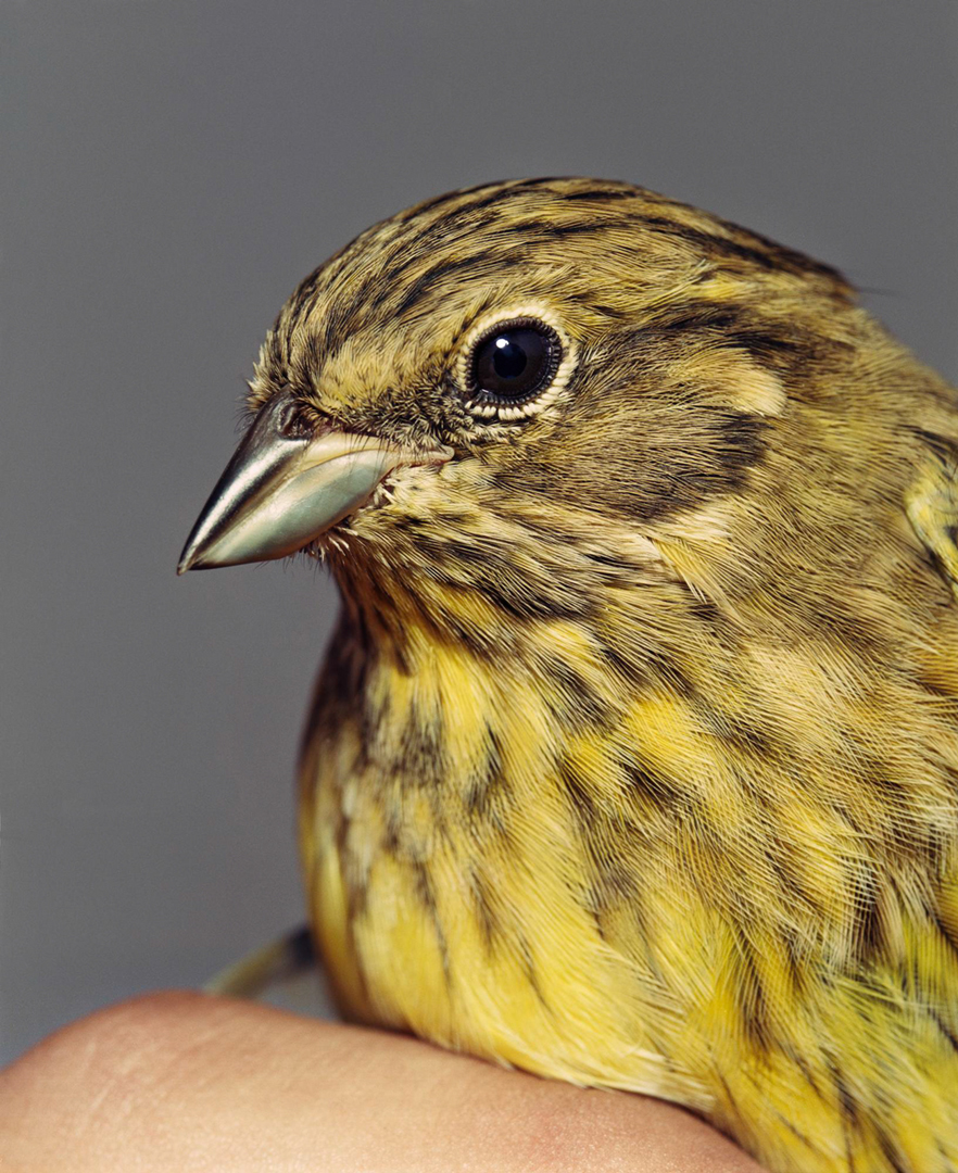 Since a couple years, he's also working on his own art projects where the bird portraits is included. The portraits is photographed with an analogue camera in a temporary studio set up close to the bird ringing station ”Sundre birdringing station” where he also works as a bird ringer. When the birds are ringed they receive a small aluminium ring around one leg where a personal number is imprinted. Various data from the bird like weight, wing length, age, and the amount of body fat is recorded and sent of to the Swedish bird banding central.
