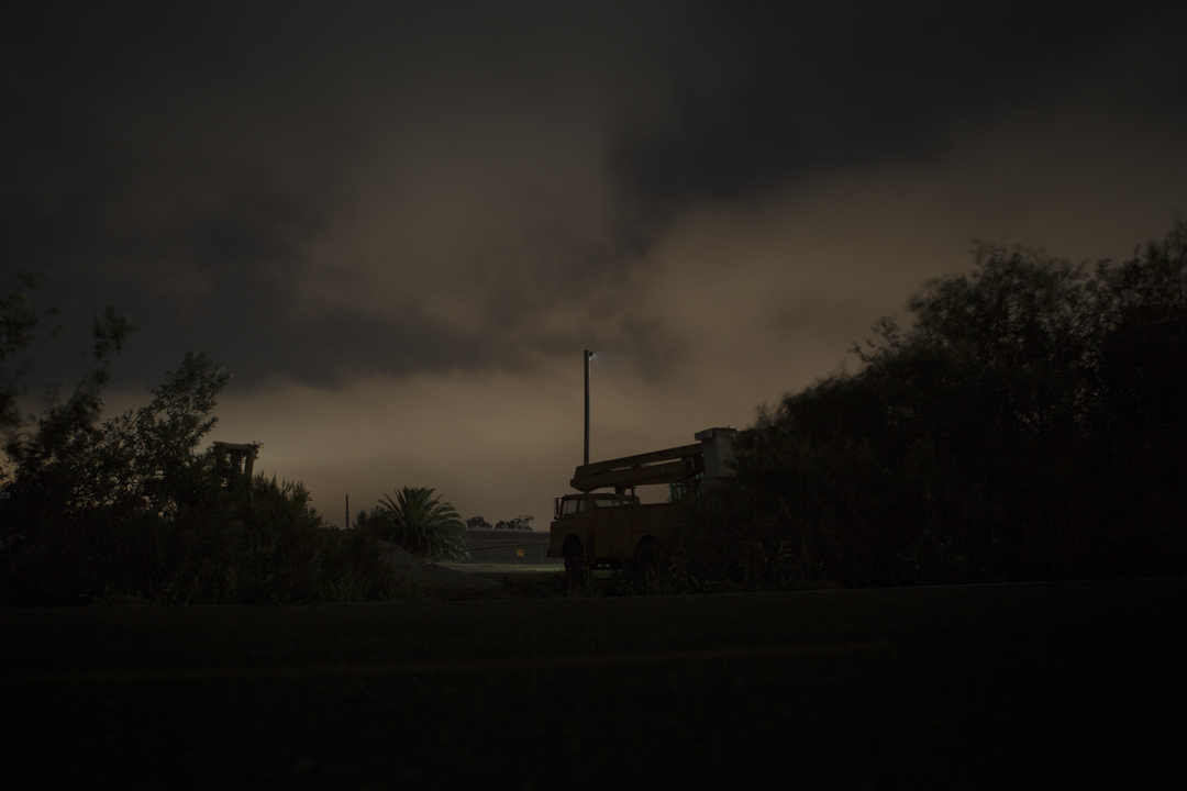 "Photography is about researching the frame, light and colours. I think I am particularly attracted to empty spaces, places where elements collide and take on an emblematic appearance in the presence of a particular light. Dusk and dawn are special moments for that because they give us the only opportunities during the day to balance daylight and artificial light. This is the start of a struggle of contrasts between day and night. These settings then begin to tell us about solitude, abandonment, scale or shelter. So even the most trivial location can become an archetypal image. "