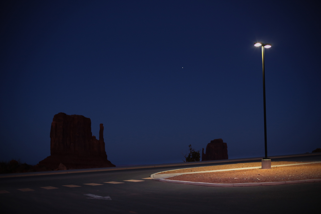 "Photography is about researching the frame, light and colours. I think I am particularly attracted to empty spaces, places where elements collide and take on an emblematic appearance in the presence of a particular light. Dusk and dawn are special moments for that because they give us the only opportunities during the day to balance daylight and artificial light. This is the start of a struggle of contrasts between day and night. These settings then begin to tell us about solitude, abandonment, scale or shelter. So even the most trivial location can become an archetypal image. "