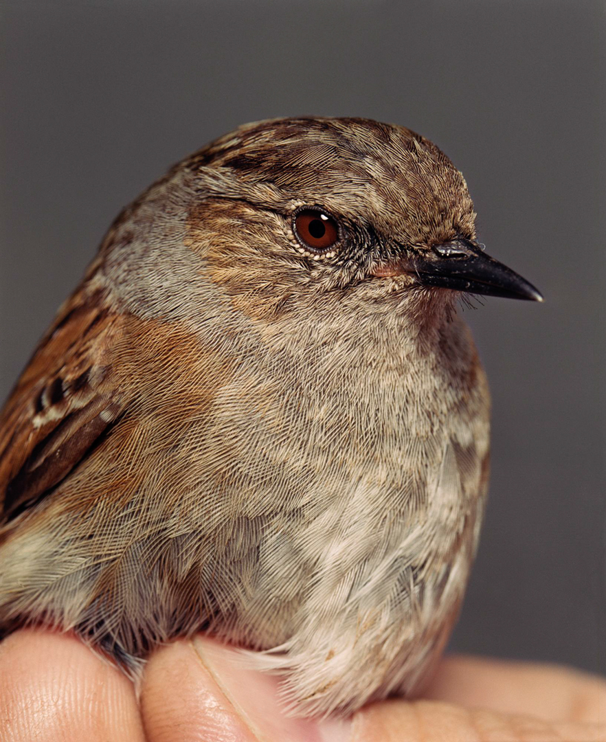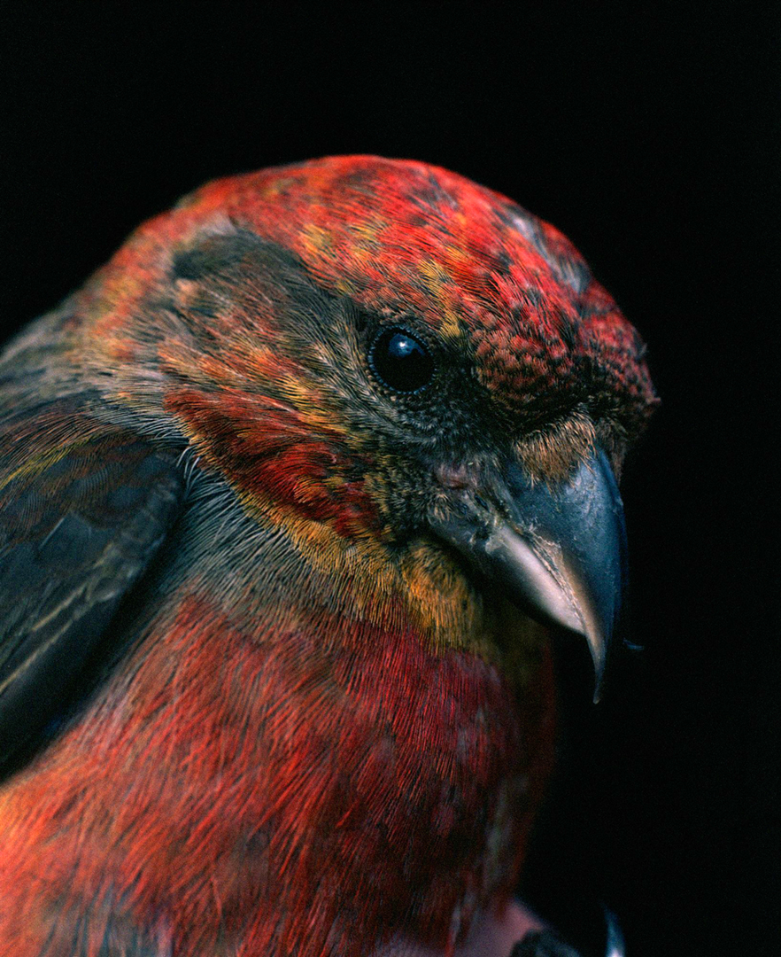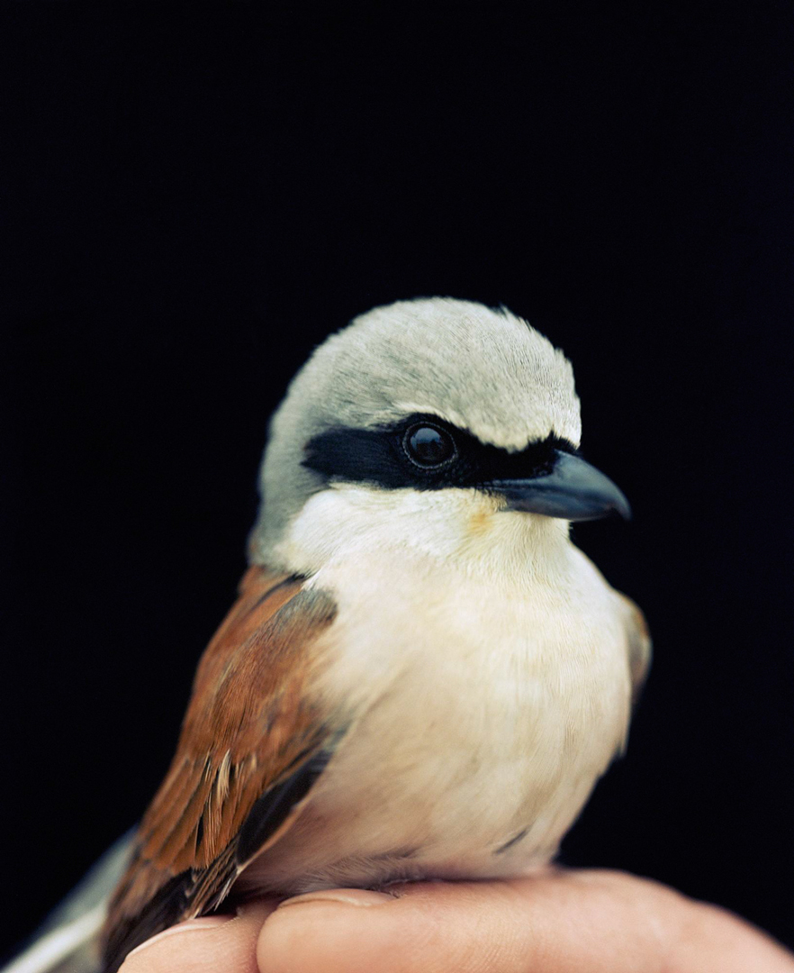 Since a couple years, he's also working on his own art projects where the bird portraits is included. The portraits is photographed with an analogue camera in a temporary studio set up close to the bird ringing station ”Sundre birdringing station” where he also works as a bird ringer. When the birds are ringed they receive a small aluminium ring around one leg where a personal number is imprinted. Various data from the bird like weight, wing length, age, and the amount of body fat is recorded and sent of to the Swedish bird banding central.